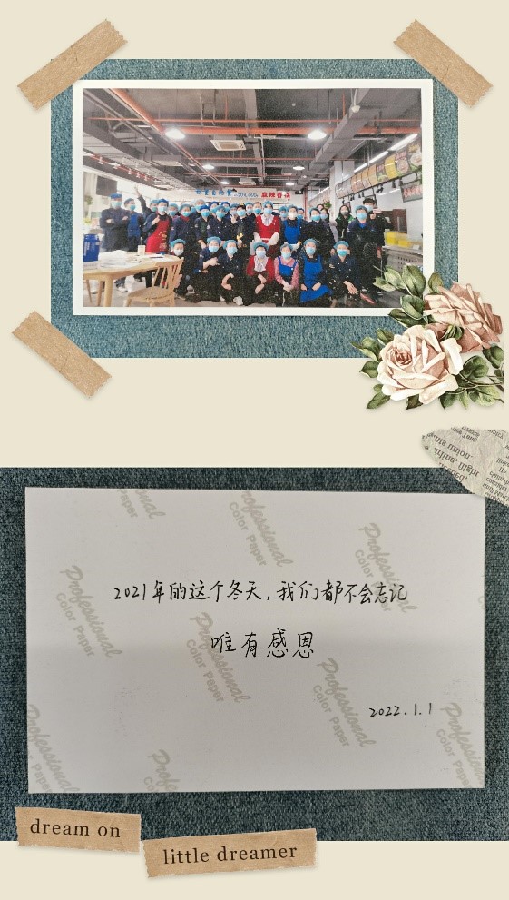 此外,同学们还为辛苦工作的食堂阿姨和叔叔写了许多表达感恩的信,感谢他们准备的热乎饭菜,感谢他们保障着同学们的日常生活。