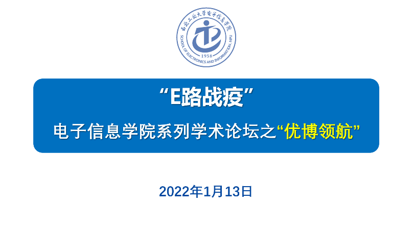 为丰富同学们在疫情期间的学习生活,共同营造“停课不停学、学习不延期”的学习氛围,1月13日晚上,电子信息学院以线上形式开展“E路战疫”系列学术论坛活动。本期论坛主题是“优博领航”,邀请我院两位“优秀博士论文”获得者徐瑞和杨光伟分享自己的成长之路。本次论坛由粟嘉主持,百余名同学参加了本次论坛。