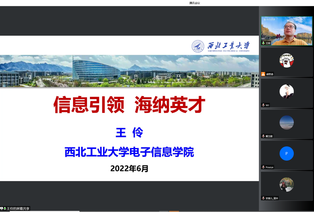 王伶院长代表学院向与会学者们介绍了学院历史沿革、师资队伍、人才培养、科学研究、招聘政策等情况。他说到,青年学者们可以依托西北工业大学电子信息学院申报国家级人才项目,学校与学院将提供丰富科研资源,为青年学者面向国际科技前沿和国家重大需求开展科学研究、人才培养提供坚实保障,在此诚挚邀请海内外青年才俊共谋发展,成就辉煌。王伶着重介绍了学院引进海内外高层次人才专属支持政策,并详细解答了青年学者们的提问。