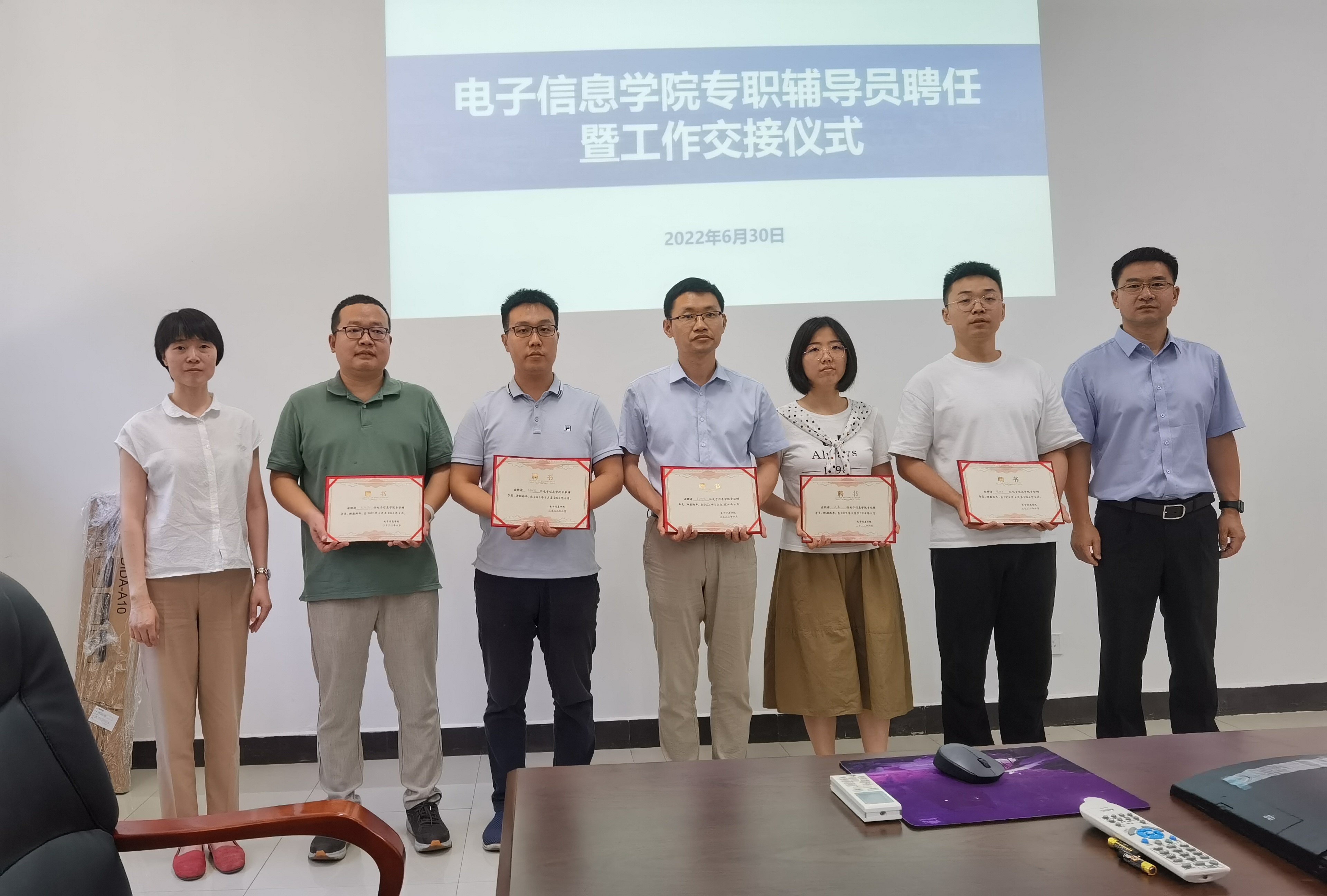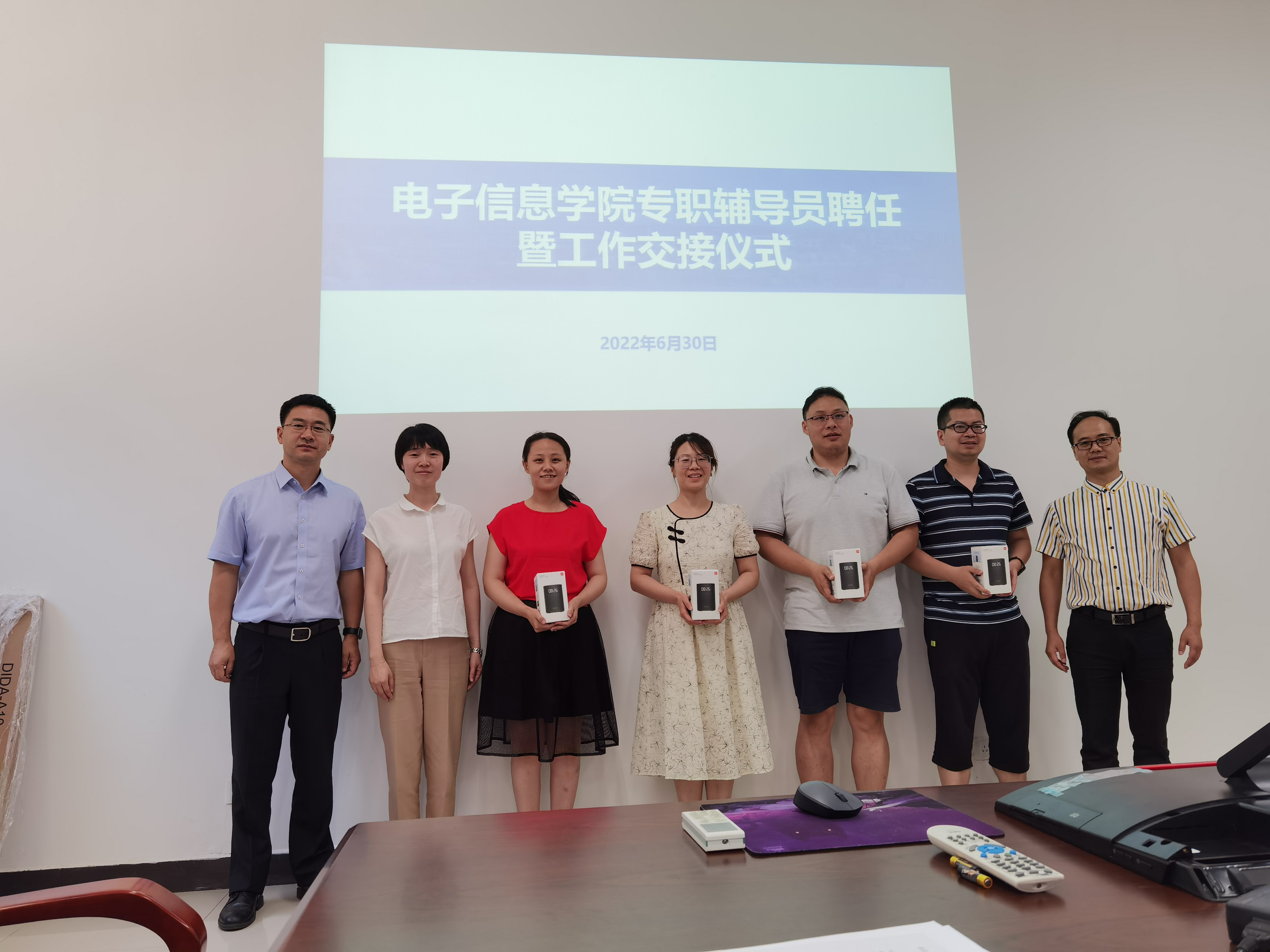 6月30日下午,在学院119会议室,电子信息学院举行专职辅导员工作交接仪式。学院院长王伶、党委书记侯俊和全体专题辅导员参加仪式,会议由副书记高敏主持。