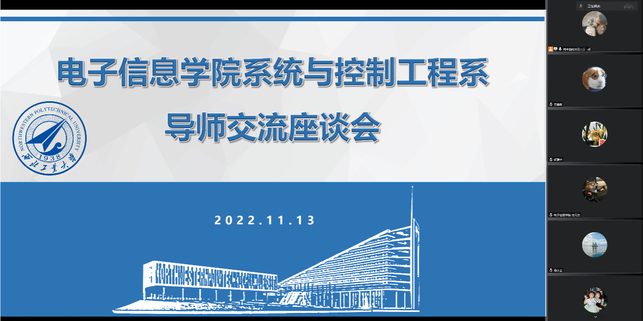 为全面落实研究生导师立德树人职责,加强研究生导师队伍建设,保证研究生导师培训质量,2022年11月13日,电子信息学院系统与控制工程系举行了导师交流座谈会。会议由系副主任闵令通主持,系主任李波及26名教师参加了此次线上座谈会。