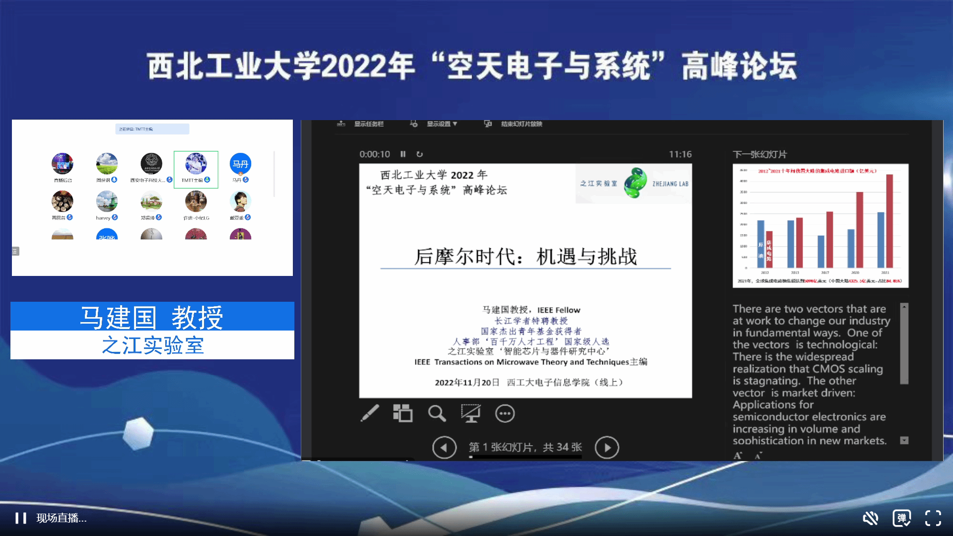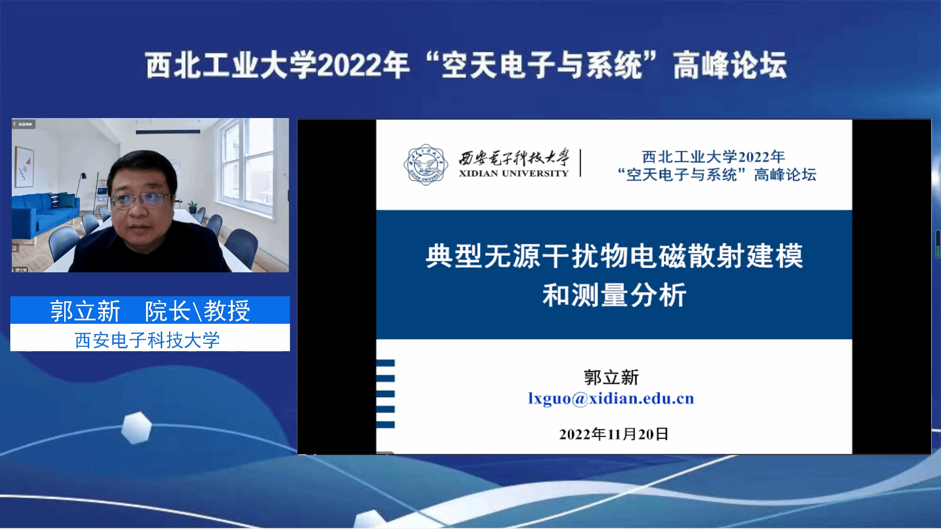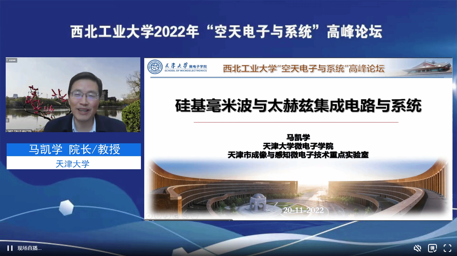 11月20日,电子信息学院成功举办西北工业大学2022年“空天电子与系统”高峰论坛,由于疫情原因,本次论坛于线上举办。西北工业大学学科建设办公室副主任林鑫,电子信息学院党委书记侯俊,副院长张洵颖,副院长高永胜,以及来自其他高校、研究所等相关领域的专家学者、师生等1000余人参加了论坛。