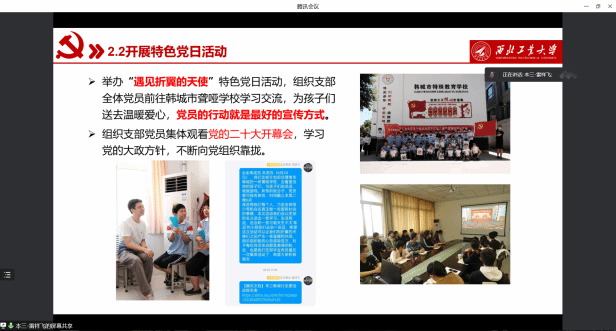 经前期各学生党支部考核推荐,共有24名学生党员参加本次评优答辩,各参评党员就其所任岗位的履职情况进行了述职汇报。