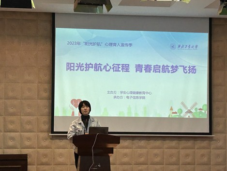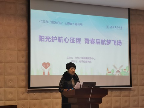 3月24日上午,《让心的距离更近——人际你我他》校园心理健康讲座暨西北工业大学2023年“阳光护航心征程 青春启航梦飞扬”心理育人宣传季启动仪式在长安校区举办。本次启动仪式由学生心理健康教育中心主办,电子信息学院承办,学生处六级职员张翠仙、电子信息学院党委副书记高敏、学生心理健康教育中心副主任刘欣、学生心理健康教育中心专任教师卢天娇、周晨琛、狄美琳、郭鹤阳、成敏与百余名学生参加本次活动。启动仪式由电子信息学院辅导员许茜主持。