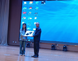 在鄞州中学报告厅,苏继东研究员为700余名高一学子做了题为《仰望星空,脚踏实地》的科普报告。他从宇宙大爆炸出发,启发师生思考:人类渺小而宇宙浩瀚,那人生价值是什么?如何实现人生价值?他提出科研道路上必不可少的四种思维,即梦想思维、创新思维、哲学思维和科学思维。他结合自身经历与切身体会就新中国七十年来的航天事业和航天精神进行讲解,重点介绍中国航天发展的三大里程碑:东方红1号、神舟5号和嫦娥1号,以及五大航天精神谱系:“航天传统精神”“两弹一星精神”“载人航天精神”“新时代北斗精神”和“探月精神”。最后,苏继东研究员鼓励同学们传承、弘扬的航天精神,立大志向、入主战场、上大舞台、干大事业。科普报告之后,高永胜和苏继东分别代表学校向鄞州中学赠送运-20飞机模型、仿蝠鲼柔体潜水器模型等礼物。