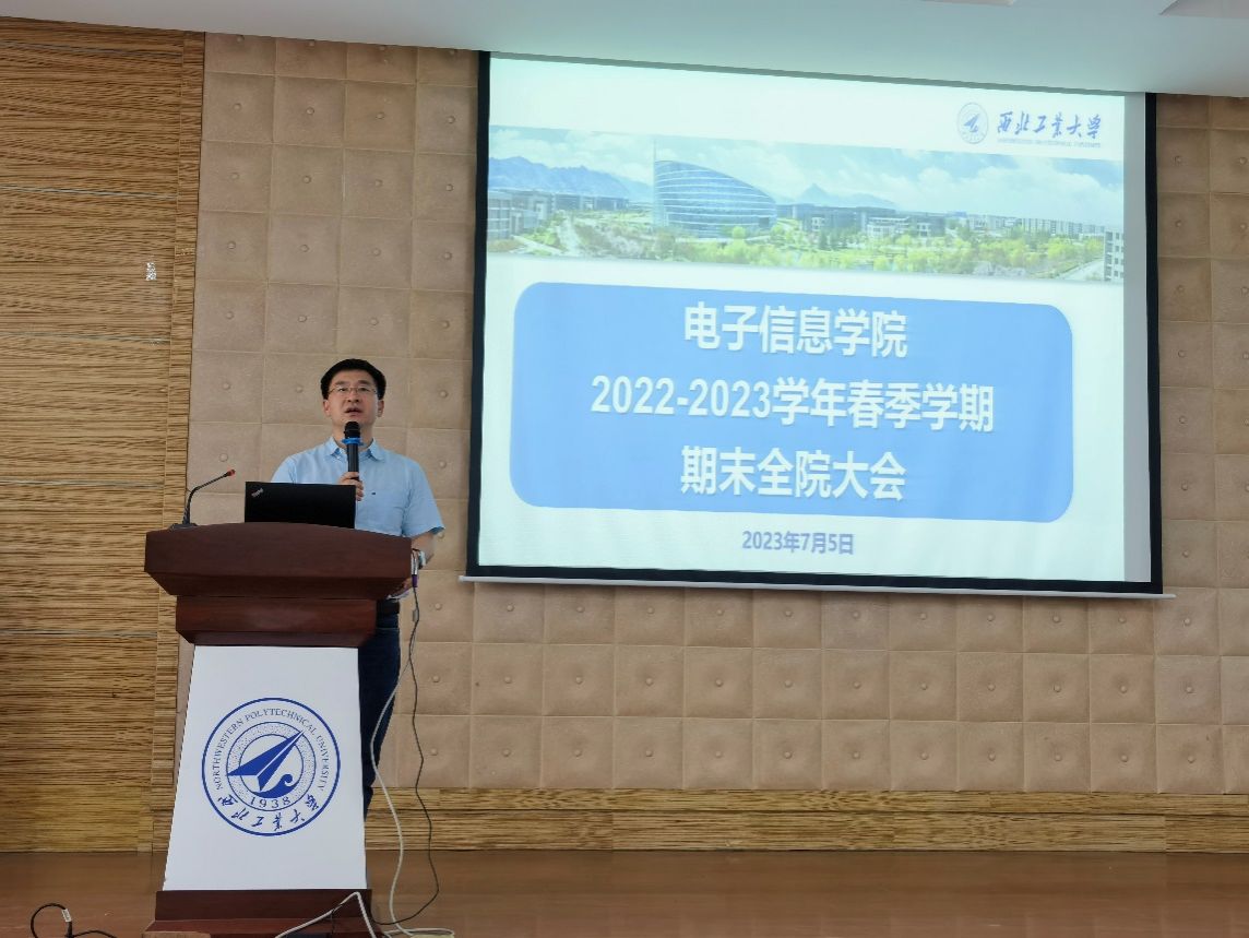 7月5日下午,电子信息学院在长安校区8、9院报告厅召开了2022-2023学年春季学期期末全院大会,学院领导班子以及全体教职工参加了此次大会。会议由党委书记侯俊主持。