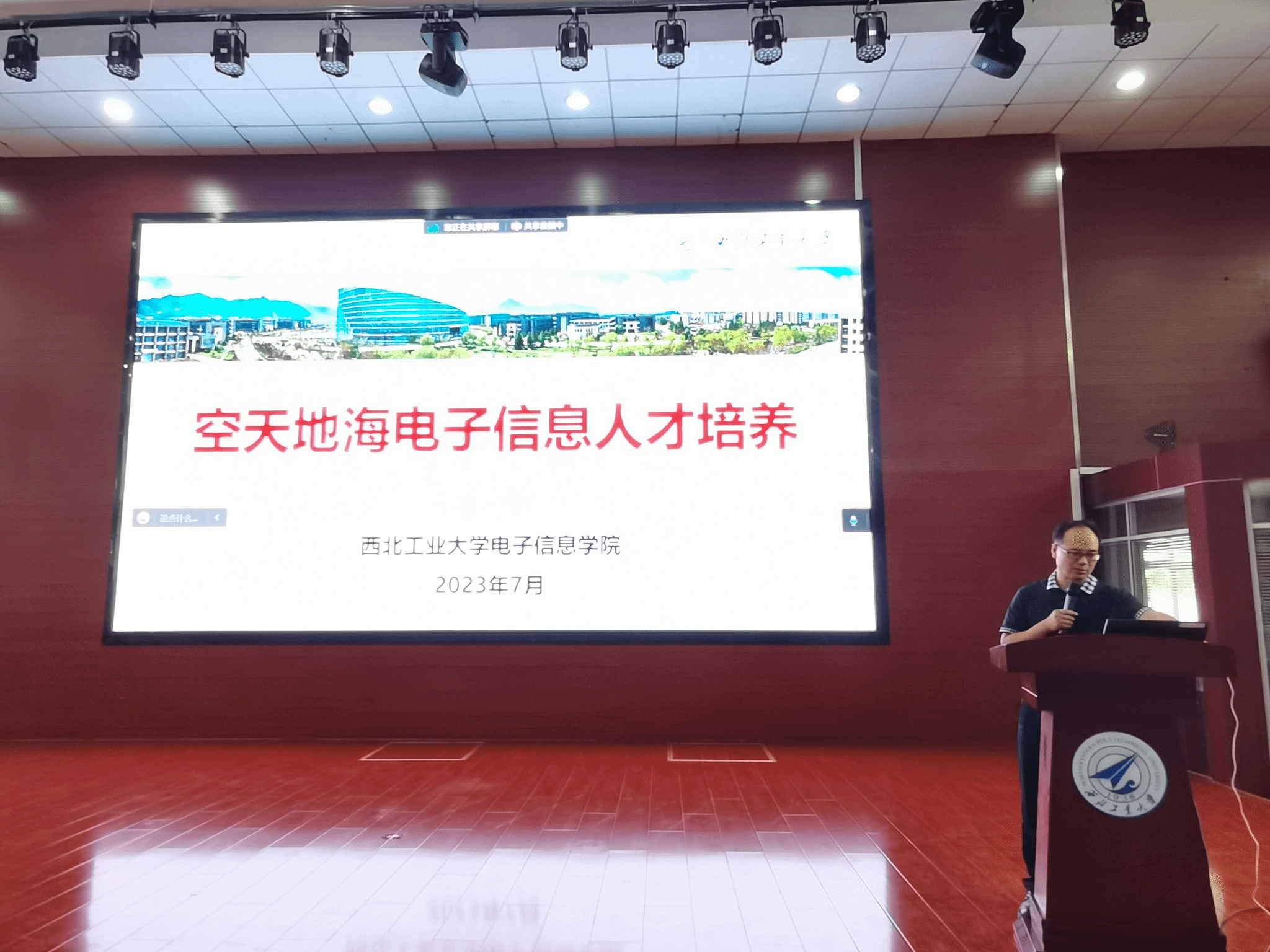 王伶作题为《空天地海电子信息人才培养》的学科发展报告,简述了学校历史及学科发展情况,希望同学们能够选择电子信息学院作为自己研究生发展的平台,站在巨人的肩上去创造自己的未来,也希望同学们在夏令营期间能够度过美好的时光。