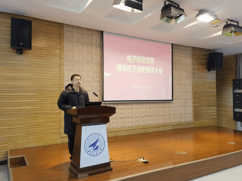12月26日上午,电子信息学院在长安校区召开了2023年度领导班子述职测评大会。学院领导班子、教师代表和学生代表共一百五十余人参加了测评会。会议由学院党委书记侯俊主持。