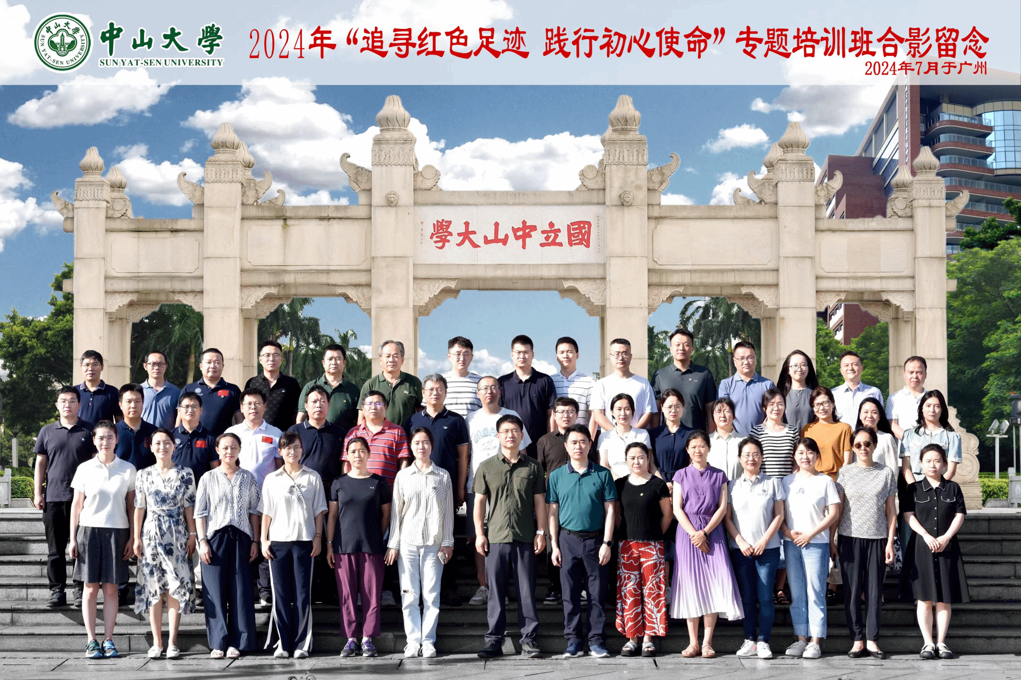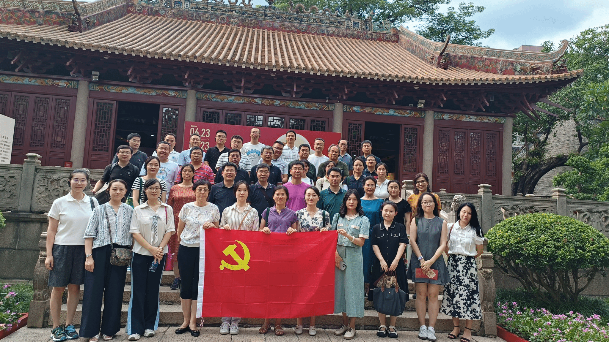 为深入学习贯彻习近平总书记关于党纪学习教育的重要讲话和重要指示精神,扎实有序推进党纪学习教育,7月20日至23日,依托党委教师工作部“教师发展支持计划”,电子信息学院组织教师赴广州开展“追寻红色足迹 践行初心使命”主题培训活动,缅怀革命先烈,传承红色基因,汲取奋进力量。学院党委书记侯俊、副书记高敏、副院长姚如贵,党委委员万国宾、马云红、包涛,系主任、青年教师、民主党派成员代表、党外教师代表、学院办公室人员等共计45人参加了此次培训活动。