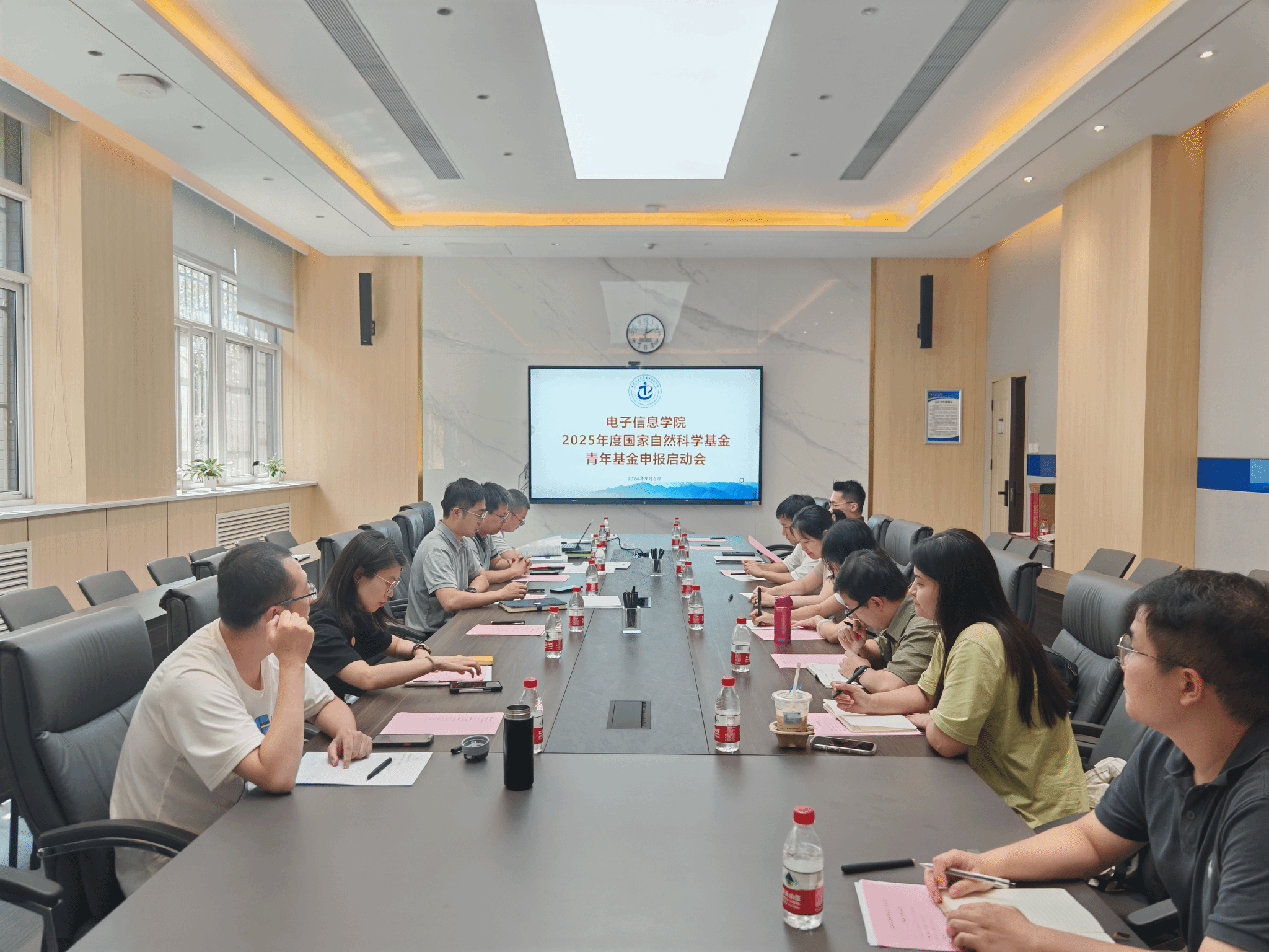 9月6日下午,电子信息学院2025年度国家自然科学基金青年基金总结会暨选题讨论会在学院楼119会议室召开,副院长陶明亮,院长助理李波,指导专家许进教授、侍佼教授,2024年新获批教师吴宝龙副教授、张可越博士后以及全体申报教师参加了此次会议,会议由副院长陶明亮主持。