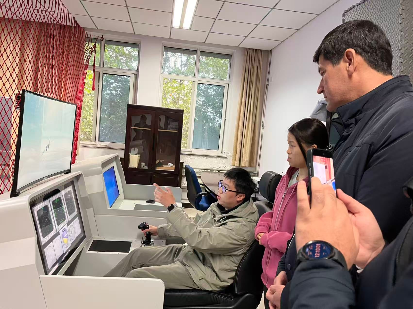 23日下午,代表团正式访问电子信息学院,并开展学术交流。学院党委书记侯俊、院长助理秦雨潇对其到来表示诚挚地欢迎。秦雨潇首先带领代表团参观了学院飞行器综合体性能分析国际科技合作基地。基地学生向外宾介绍了飞行器研究项目并进行演示。参观结束后,学院党委书记侯俊与代表团进行了友好交流,双方在融洽的氛围中合影留念。