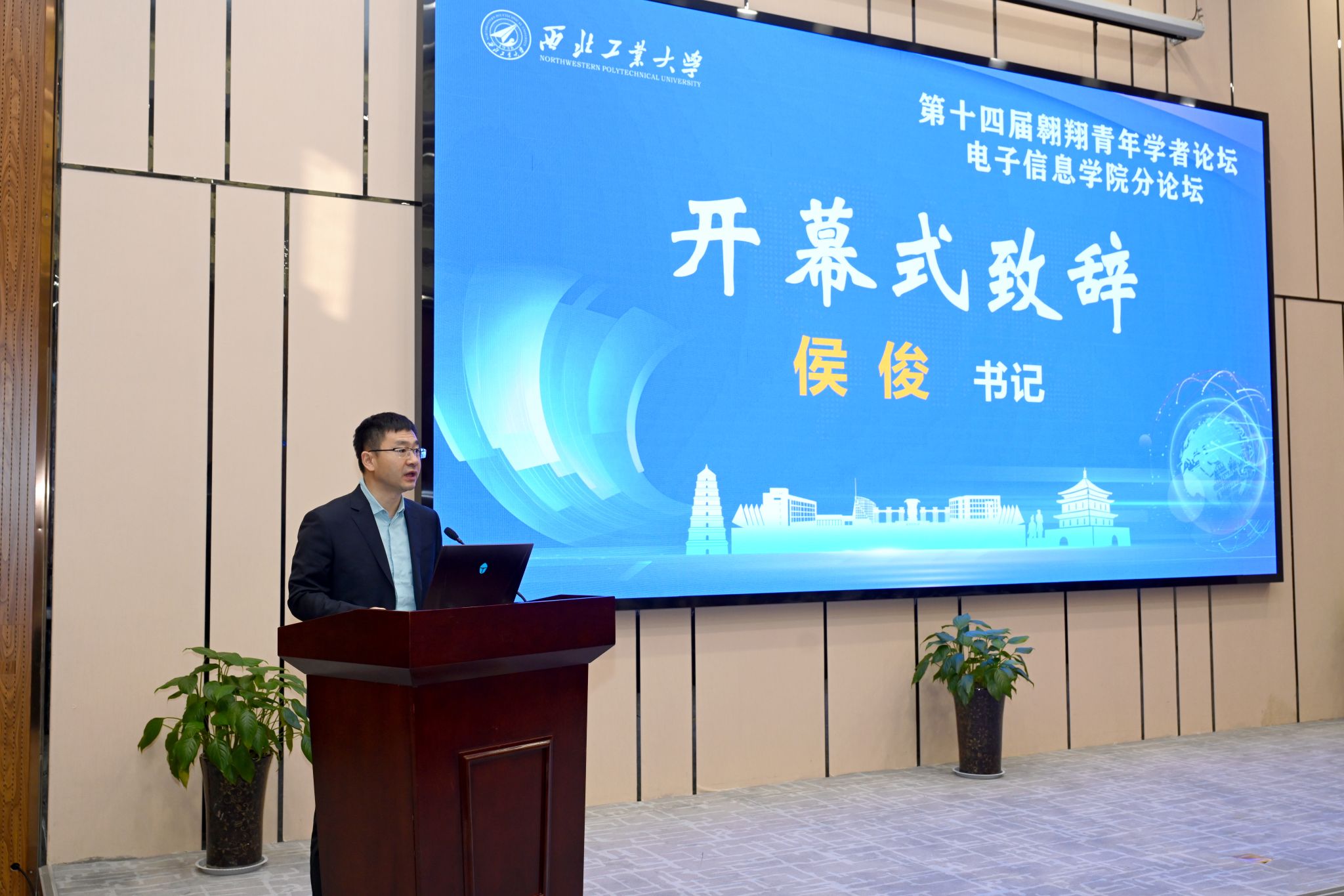 侯俊代表学院致开幕辞,向与会的海内外青年学者表示热烈欢迎,他强调,学院高质量发展离不开高水平的师资队伍,学院高度重视人才引育工作,真诚期待海内外心系祖国、胸怀天下的优秀青年才俊加盟西北工业大学电子信息学院。