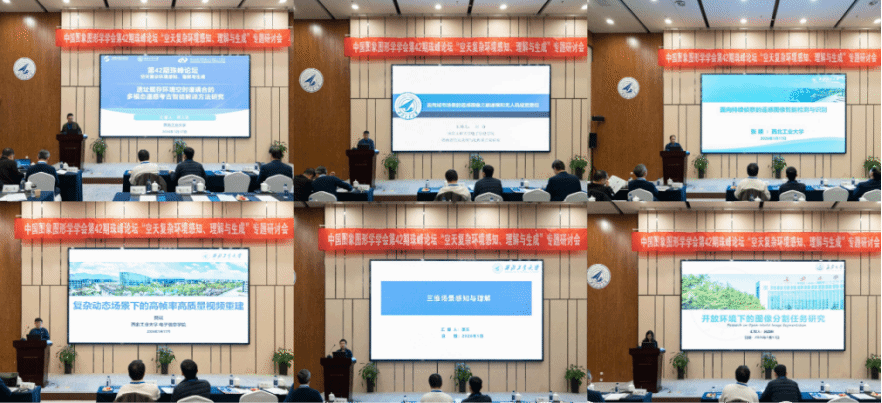 在青年学者论坛环节,由长安大学高涛教授主持,特邀北京师范大学张立强教授、北京航空航天大学徐迈教授、吉林大学王世刚教授,同济大学赵才荣教授、上海交通大学沈为教授、南京理工大学潘金山教授作为指导专家。西北工业大学何人杰长聘副教授、樊斌教授、张顺副教授、刘奇副研究员、惠乐副教授、以及长安大学吕韵秋讲师等青年学者围绕空天复杂环境感知、理解与生成,结合自身研究方向进行了汇报与交流。与会专家结合自身科研与人才培养经验,与青年教师和研究生展开了深入而富有启发性的讨论,分享科研道路上的实践体会与思考心得,现场互动热烈,氛围融洽。