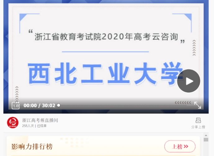 电脑端可登录浙江省教育考试院网站(www.zjzs.net)直接进入“云咨询周”窗口平台主界面,点击入口三,找到西北工业大学,点击即可观看。