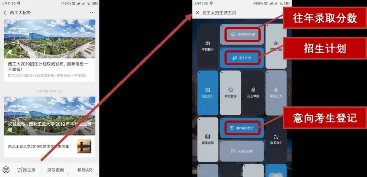 搜索微信公众号“西工大招办”(或扫描文末二维码),点击左下角“微主页”,即可进行意向考生登记,招生组工作人员会进行一对一电话回访。