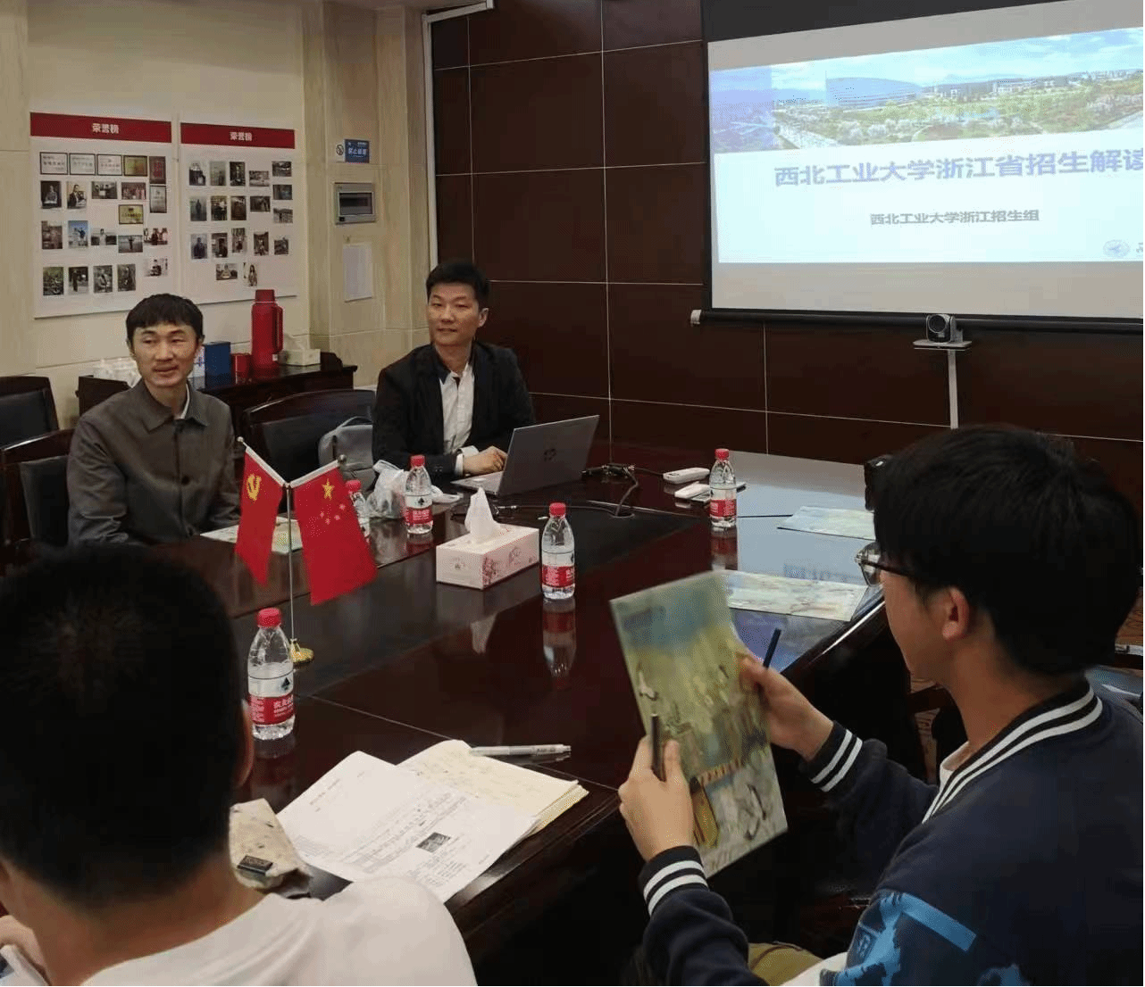 为进一步增进莘莘学子对西北工业大学的了解,吸引更多优秀生源报考我校,4月19日,浙江招生组在电子信息学院党委书记侯俊、副院长兼浙江招生组组长高永胜的带领下赴效实中学开展招生宣讲、科普讲座等招生宣传活动。西北工业大学1985级校友、中国航天科技集团卫星型号副总设计师苏继东研究员,西北工业大学胡晓宇、郭志巍一同参加活动。