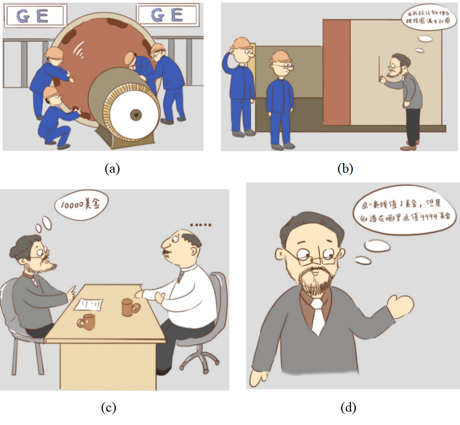 3. 名人故事:最后通过卡通图片的形式对提出相量法的科学家(斯泰因-梅茨)著名的“一线万金”故事进行介绍,弘扬科学精神、工匠精神、奋斗精神,既活跃了课堂气氛,又实现了“知识传授与价值引领相结合”的教学目标。