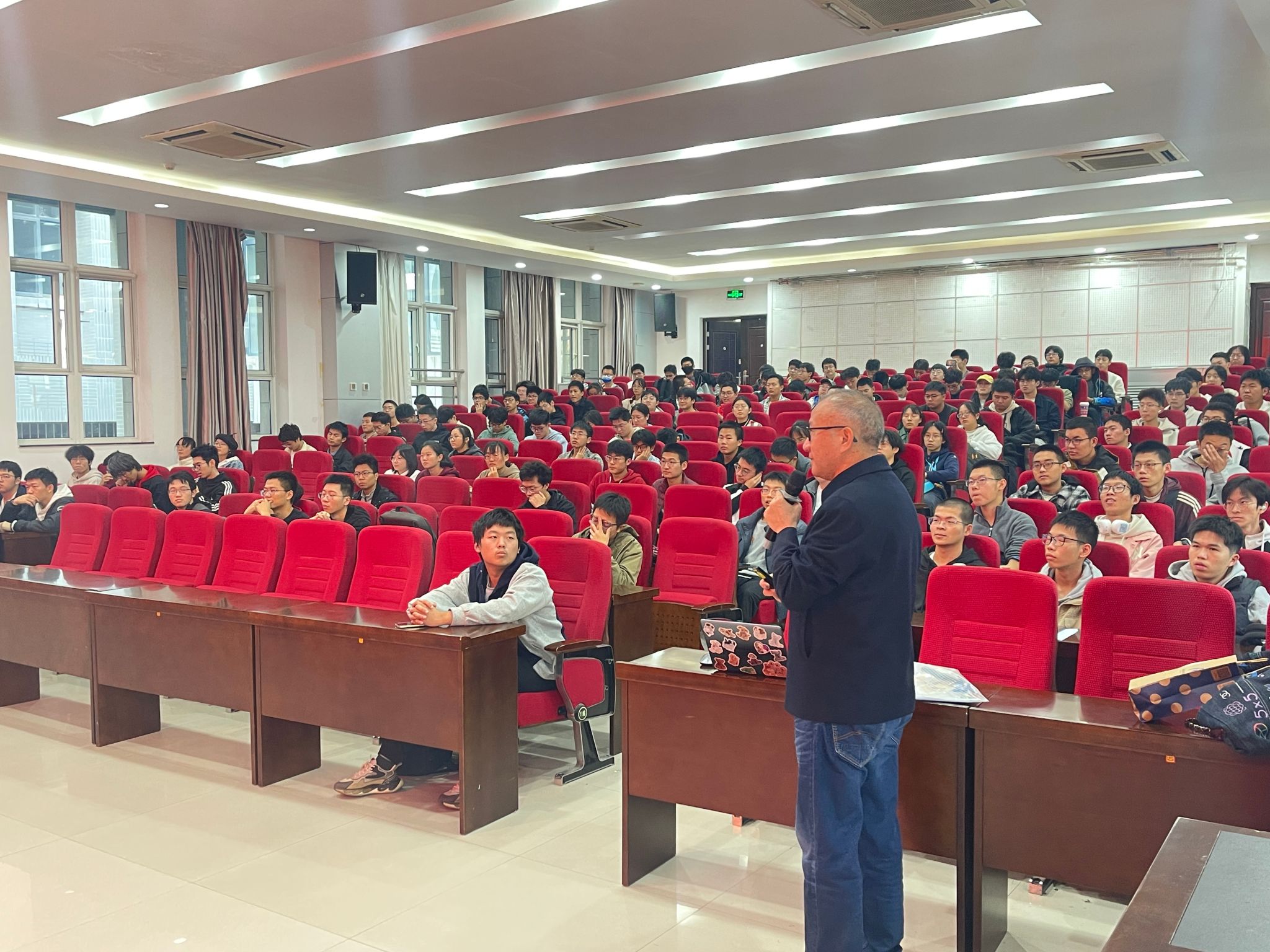 2024年11月7日,电子信息学院95级校友、中国航天科技集团苏继东研究员受邀来到《电子信息技术》课堂,为本科生讲授以“仰望星空,脚踏实地——传承与弘扬航天精神、科学家精神”为题的研讨课,课程授课教师万国宾教授、2024级班主任徐钊副教授,以及近200名大一本科生共同聆听了这次精彩纷呈的课程。