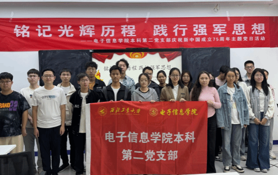 为回顾新中国成立75年来的辉煌历程,深入体会中国人民在中国共产党的坚强领导下,从站起来、富起来到强起来的伟大飞跃,10月12日下午,电子信息学院本科第二党支部在学院236会议室开展了“铭记光辉历程 践行强军思想——庆祝新中国成立75周年”主题党日活动。本次活动由宣传委员时嘉乐主持。