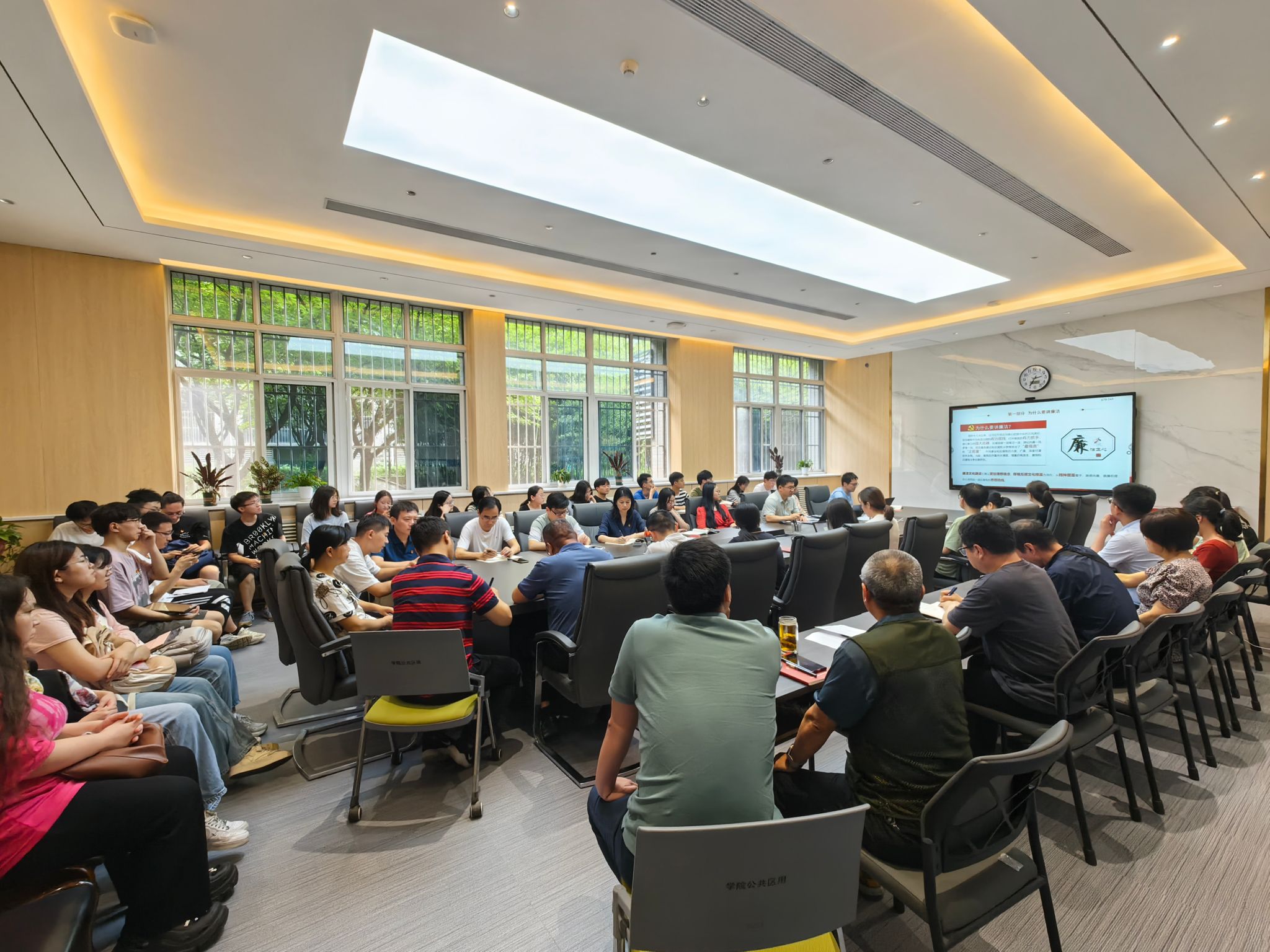 为推动学习贯彻习近平新时代中国特色社会主义思想主题教育走深走实,强化理论学习,6月12日下午,在学院119会议室,学院党委书记侯俊以“以案为鉴知敬畏 防微杜渐守底线”为题,为所联系党支部讲授廉洁专题党课。学院办公室党支部、信息工程系党支部、硕士第六党支部、本科第二党支部党员参加了党课学习。
